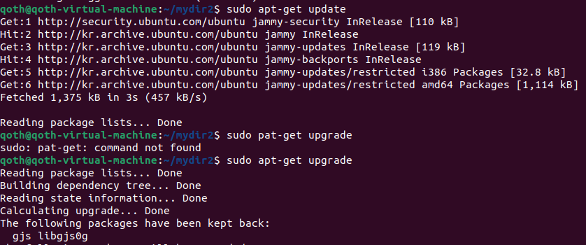- sudo 키워드는 현재 계정에서 root 권한을 이용하여 명령어를 실행하는 프로그램(현재 사용자의 비밀번호를 입력)