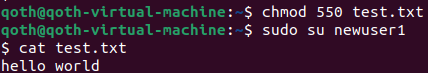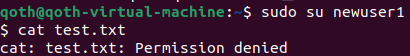 newuser1으로 계정 변경후 test.txt 읽기 불가능