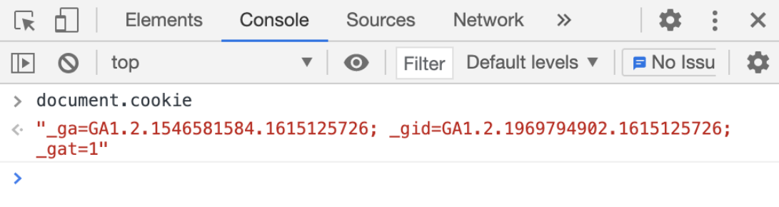 document.cookie를 입력하면 쿠키 정보를 확인할 수 있다.