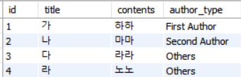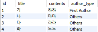 - post 테이블에서 id, title, contents, 그리고 author_id의 경우 author_type이라는 이름으로 조회