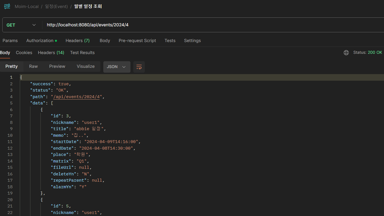 → Spring MVC에서 동일한 경로(/api/events/2024/14)에 대해 두 개 이상의 핸들러 메소드가 매핑되어 있어서 발생