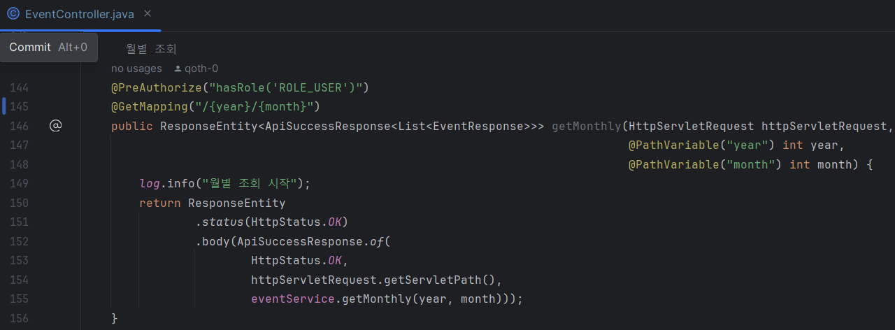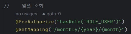 월별 조회를 위해 year와 month를@PathVariable로 받는다.